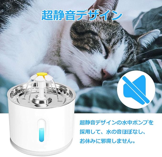 【超静音&省エネルギー】超静音設計の水中ポンプを採用して、騒音が45dB以下で、夜にもお休みを邪魔しません。省エネ技術を採用して、1.5Wの低消費電力でという低電力消費を実現できます。低電気代を実現します。