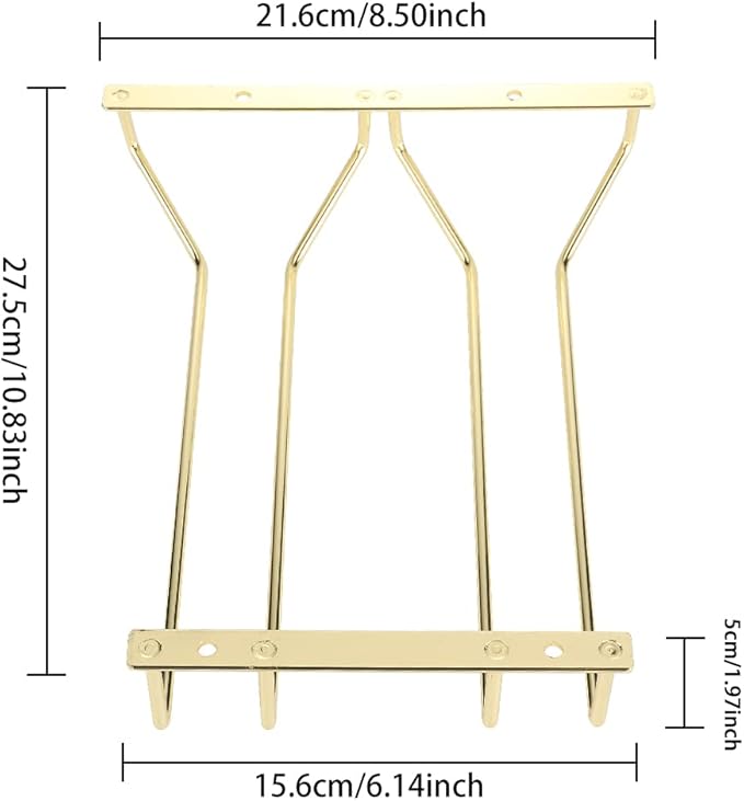 ゴールドワイングラスラック キャビネット下 27.5cm 1~3列 頑丈な鉄製