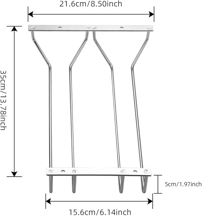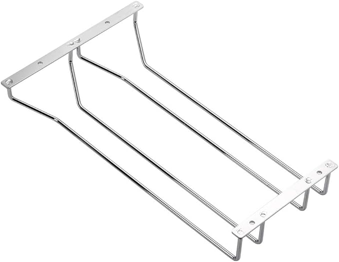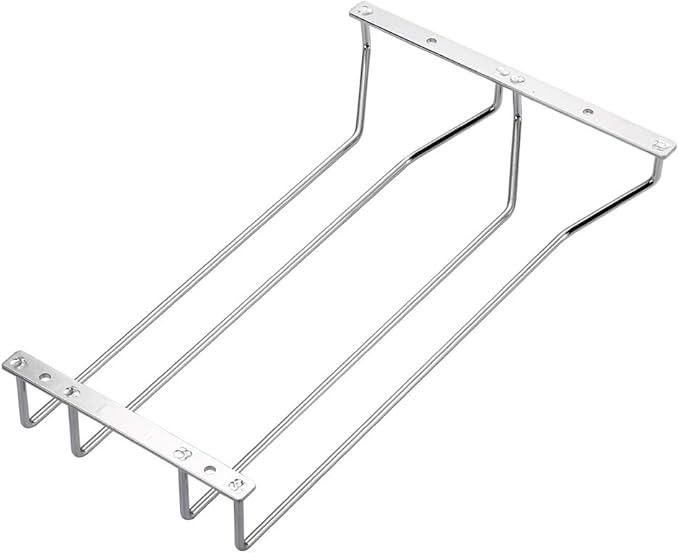 ワイングラスラック キャビネット下 吊り下げワイヤー 脚付きグラスラックホルダー ネジ付き クローム仕上げ 35cm 2 Rows シルバー