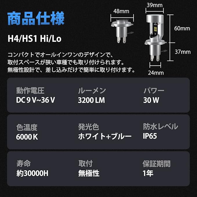 【防水&一年保証】 IP65完全防水仕様、日常の使用が安定していて様々な天候でも安全運転を確保できます。-40℃~+80℃の環境でも瞬間作動出来ます。ライトは1年保証が付いています。出荷前に全部検品済みです。商品到着後、速やかに商品の状態をご確認ください。保証期間内に不具合、故障がございましたら、ご遠慮なくメールにてお問い合わせてください。交換または返金対応させていただきます。「アカウントサービス」→「注文履歴」→「出品者に連絡する」から、ご連絡をいただきますようお願い申し上げます。24時間以内にで迅速に対応させていただきます。ご注意:このライトは直流電バイク専用です、交流電バイクは使用しないです、ご了承ください。