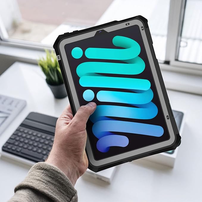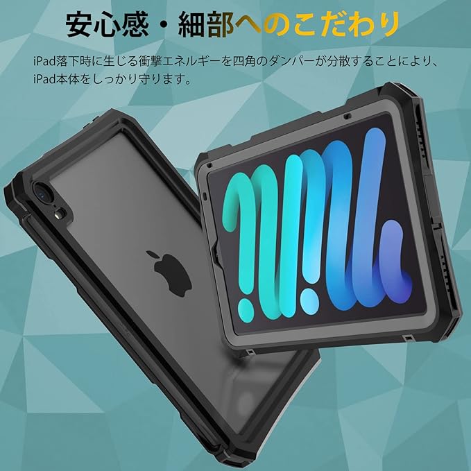 iPad mini7 ケース (A17 Pro、2024) iPad mini 第7/6世代 ケース (8.3インチ、2024/2021) 防水 全面保護 耐衝撃 衝撃吸收 傷防止 防雪 防塵 Pencil2充電対応 雨の日、お風呂など適用 iPad mini 7/6 防水ケース(8.3インチ)