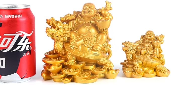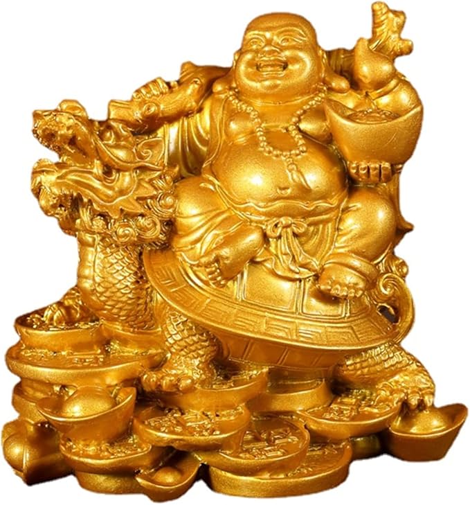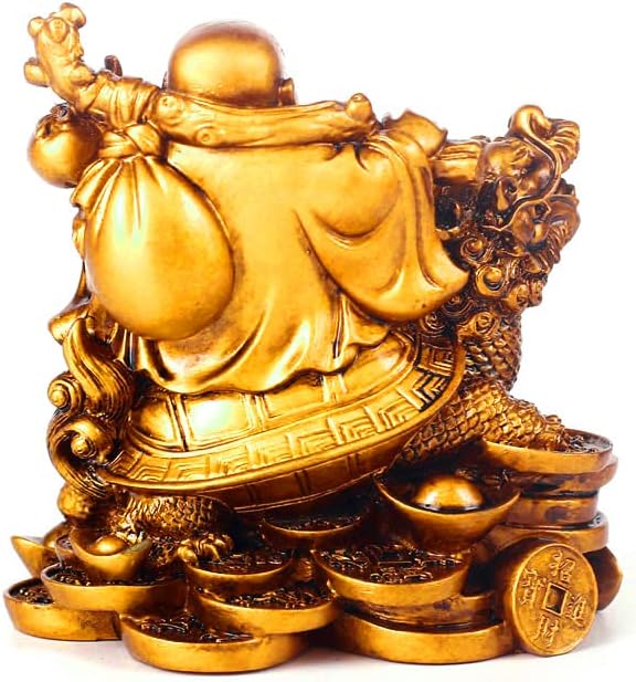Lhyxuuk 布袋様 置物 開運 七福神 布袋 仏像 龍亀に座っている布袋様 弥勒菩薩 置物 金運 ゴールド オブジェ 商売繁盛 厄除け 風水グッズ 玄関 インテリア 縁起物 (小さい)