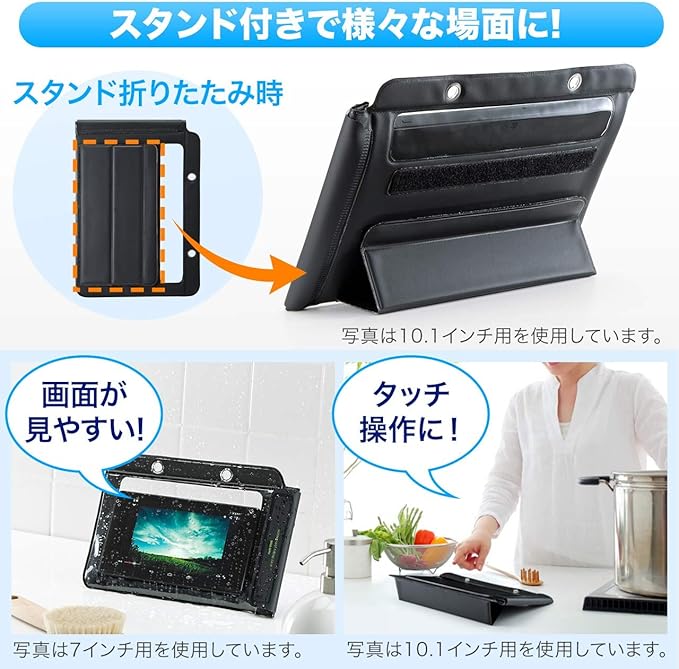 サンワダイレクト iPad タブレットPC 防水ケース お風呂 対応 iPad 10.5インチ汎用 スタンド機能 ストラップ付 1個 200-PDA127