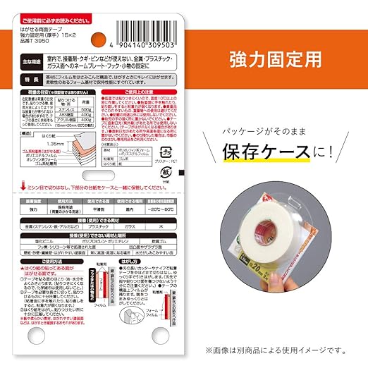 ニトムズ(Nitoms) はがせる両面テープ 強力固定用 厚手 簡単 のり残りしない 室内 フック 幅15mm 長さ2m 厚さ1.35mm 1巻入 T3950