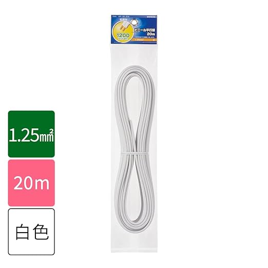 OHM 配線用 ビニール平行線 白 20m 1200W (04-7335)
