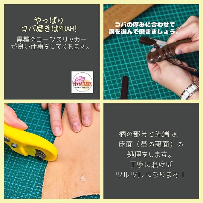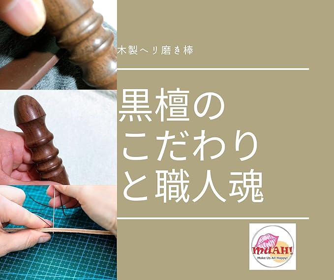 MUAH! コバ磨き 黒檀製 レザークラフト ヘリ磨き コバ 仕上げ コーンスリッカー 革磨き レザースティック 光沢 革細工 道具 天然 重くて 硬い 黒檀