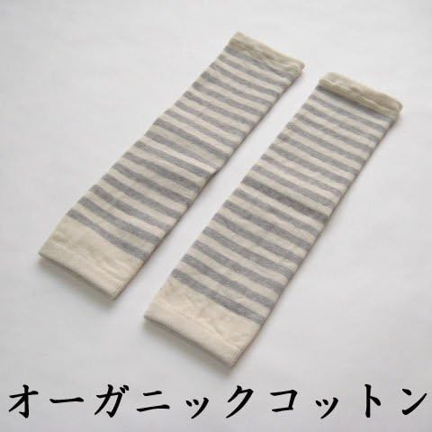オーガニックコットン レッグウォーマー ボーダー グレー