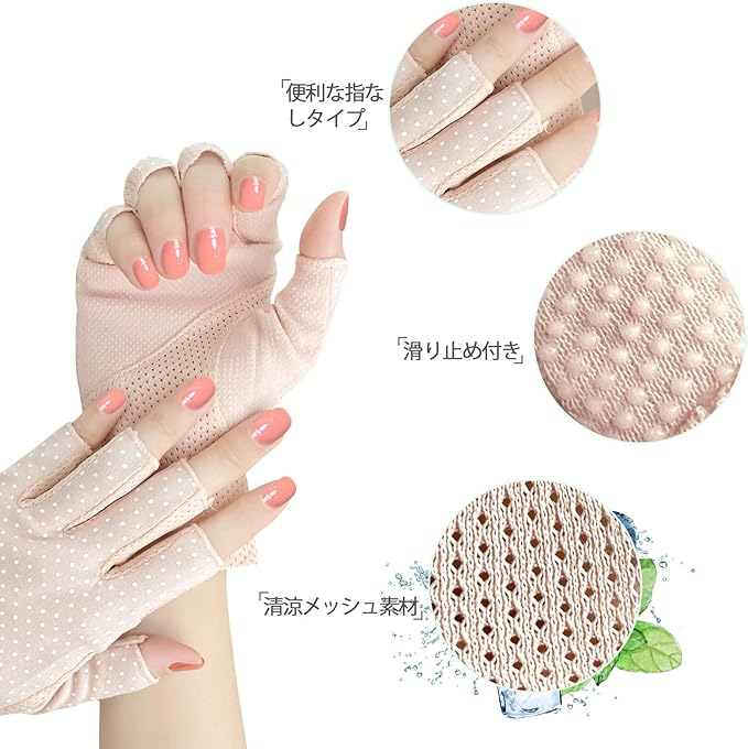 [夢の物] 清涼uvカット手袋 指なし レディース スマホ対応 清涼メッシュ 紫外線対策 日焼け止め 滑り止め付き 通勤 運転用 自動車 春夏用 薄手