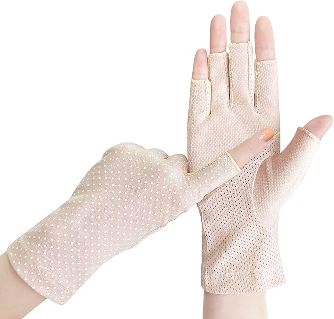 【夏の車運転時に最適】指と手のひらの上半分には滑り止め付きますので、運転や自転車などにも対応できます。しっかりハンドルが握られて、安全性も高いです。