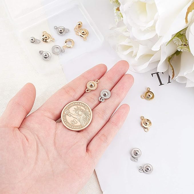 UNICRAFTALE 約12セット 2色 15mm ステンレス 留め具 クラスプパーツ スナップクラスプ 押す ステンレス 留め具 留め金 ステンレス エンドパーツ チェーン留め 接続金具 金属パーツ ブレスレット留め具 ネックレス 留め具 アクセサリーパーツ 副資材 ハンドメイド 手芸用品