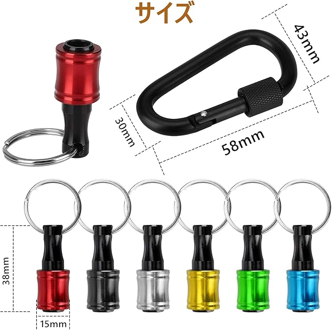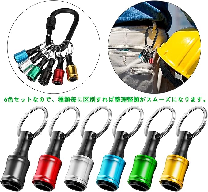 YFFSFDC ビットホルダー 6色セット キーホルダー型 引き上げ式 カラビナ付き 携帯用 ソケットホルダー 先端工具 ドライバービットホルダーセット スクリュードライバービットセットセット