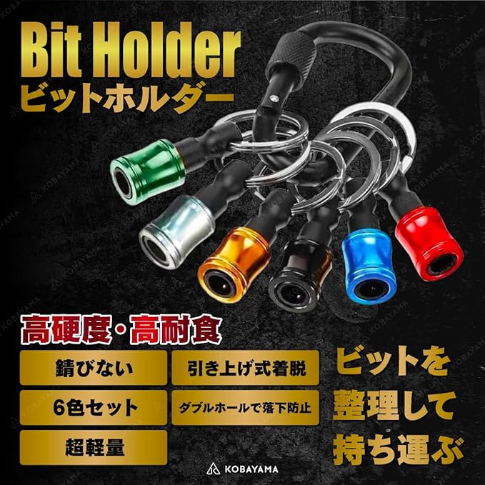 ビットホルダー ソケットホルダー キーホルダー型 携帯用 収納 先端工具 パーツ ドライバー カラビナ 持ち運び 引き上げ式 ドリル アダプター【6色セット 】(gr001)