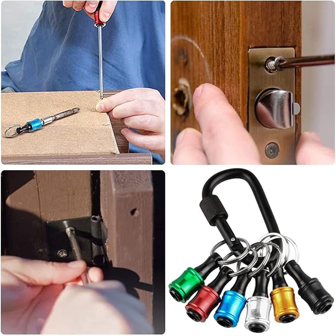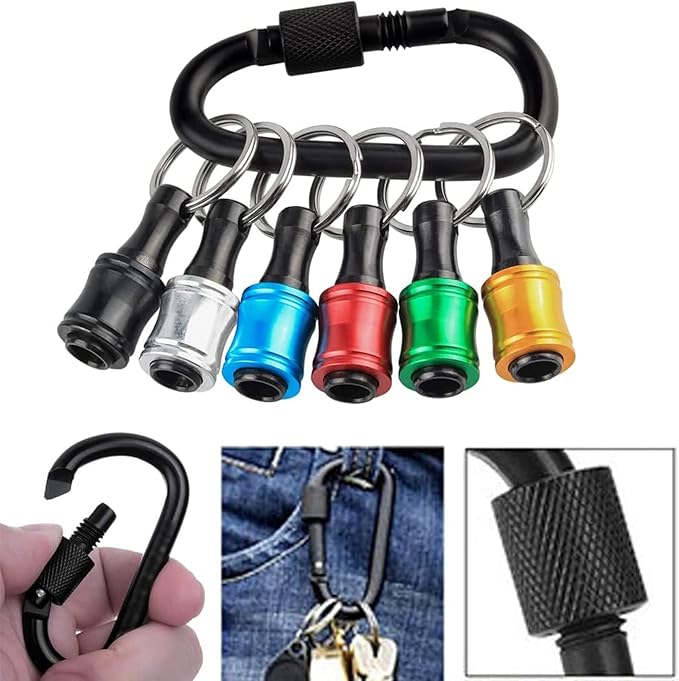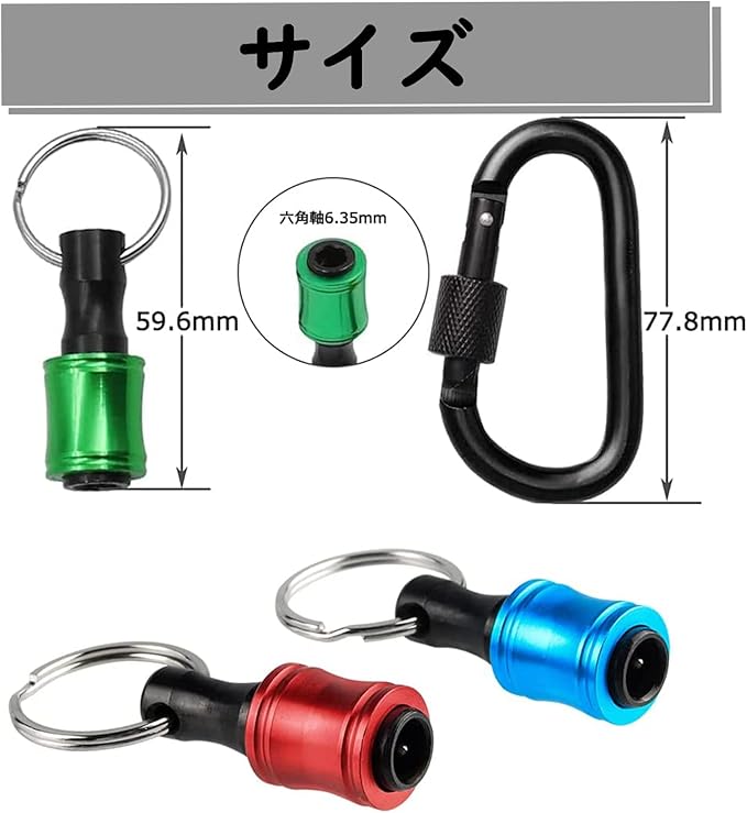 セット内容:6色ビットホルダー + カラビナ*1 、6色サイズ : 赤、オレンジ、青、緑、黒、銀。ドライバーホルダーセット先端工具、携帯用 。