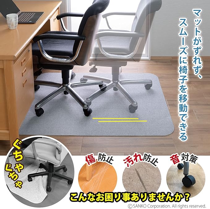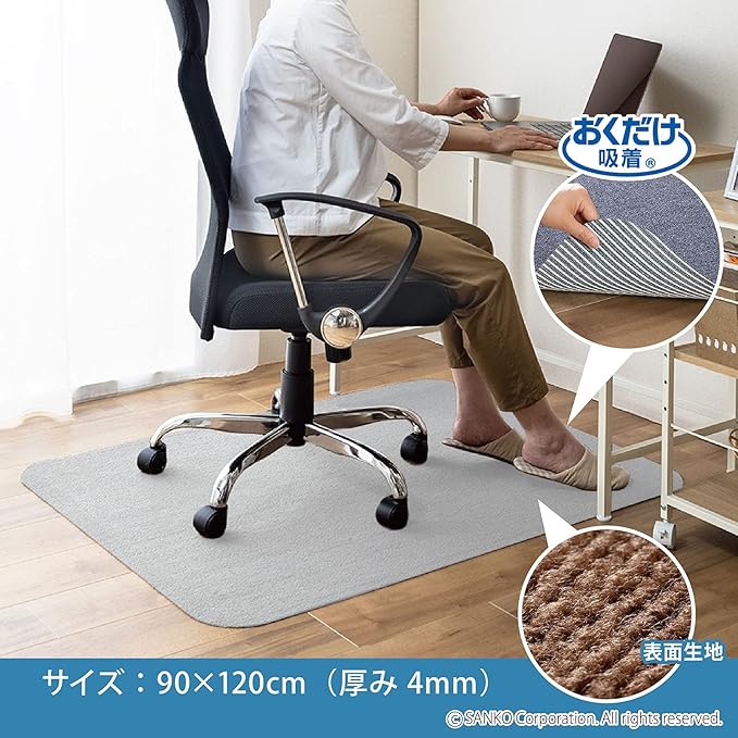 サンコー チェアマット ずれない ゲーミング デスクマット 床保護 マット 滑り止め おくだけ吸着 90 120cm ライトグレー 日本製 KQ-76
