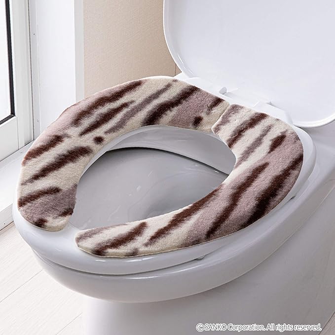 【日本製 消臭 洗える】サンコー ずれない ふんわりタイプ トイレ 便座カバー 9mm 吸着 Cat's ベンザシート キジトラ 猫 おくだけ吸着 KV-99