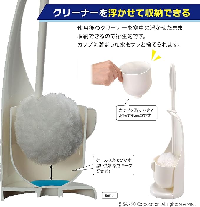 Sankoサンコー やわらか トイレブラシ ケース付 水だけでも汚れが落とせる特殊繊維 傷がつきにくい レギュラー ホワイト びっくりフレッシュ 日本製 BL-93