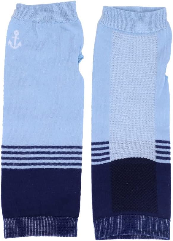 [GlovesDEPO] アームカバー 手のひらメッシュ ショート手袋 指無 レディース マリンボーダーサックス