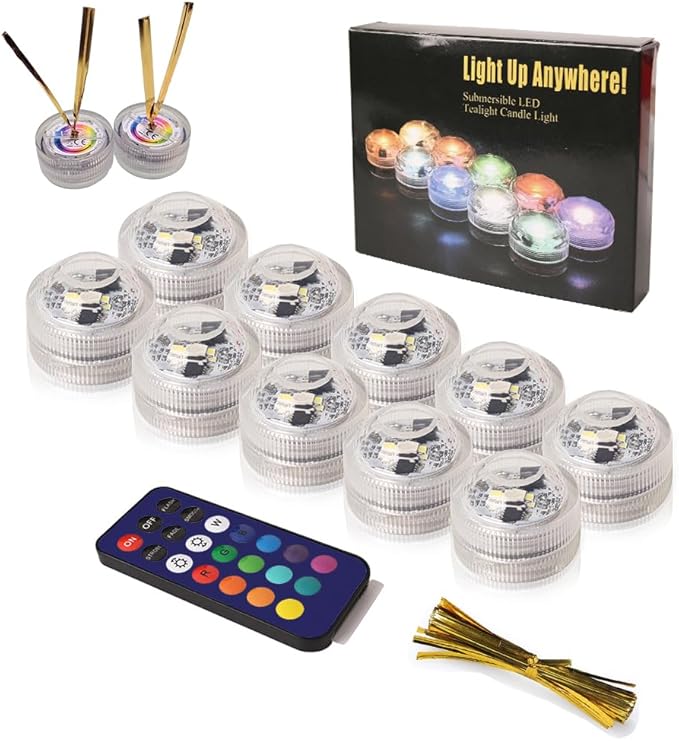 BigFox LED潜水キャンドルライト リモコン付き 防水 花瓶ライト 小型ローソクライト 全13色に切替 電池式 クリスマス/ウェディング/パーティー/誕生日に最適 (10ライト +1リモコン) マルチカラー