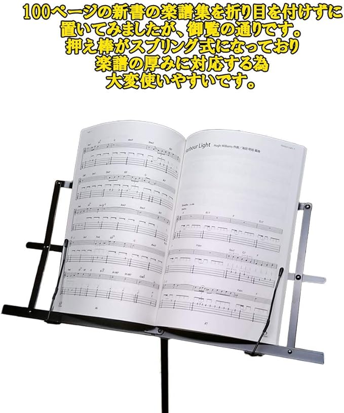 般的なタイプの組み立て式譜面台。安定性・シンプル・コストパフォーマンスと3拍子そろいの譜面台になります。