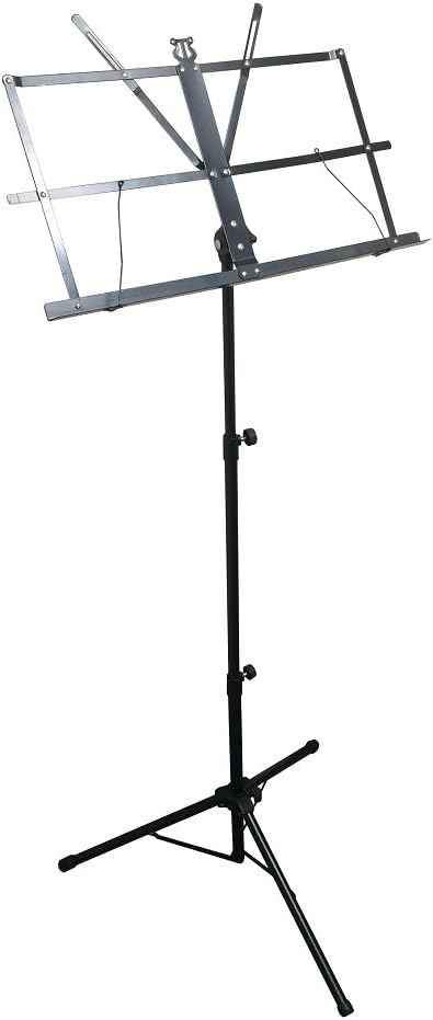 携帯に便利な折り畳み式譜面台です。 ベーシックな黒色塗装。 高さ:約75cm~約140cm、譜面台部分は 約46.5cm 約29cm。 本体1Kg以下の重量も魅力です。