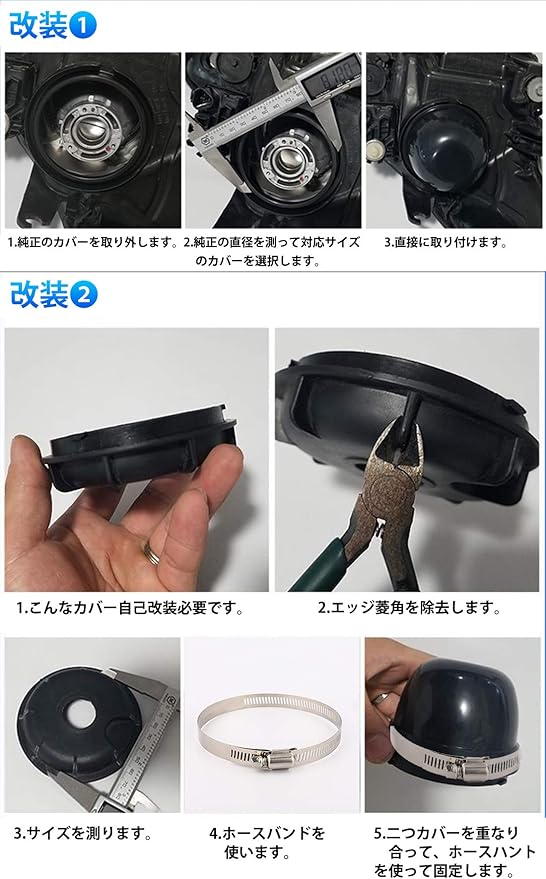 ☆【商品内容】:ヘッドライト防塵カバー*2個 ホースバンド*2個