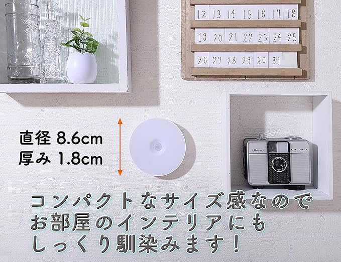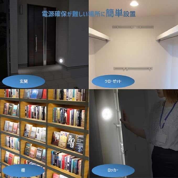 小型 LED人感センサーライト USB 充電式 室内 明暗センサー マグネット 両面テープ付き 3個入 電球色