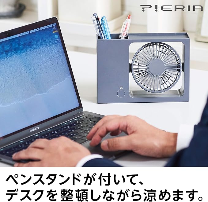 ペンダントスタンドが付いて、デスクを整頓しながら涼めます。