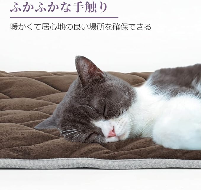 ホットマット ペット用 ベッド マット 猫 犬 マット 暖かい ペット用保温マット 洗える 物理的保温 体温で蓄熱 防寒 寒さ対策 ふわふわ あったか(ブラウン M:70*48cm)