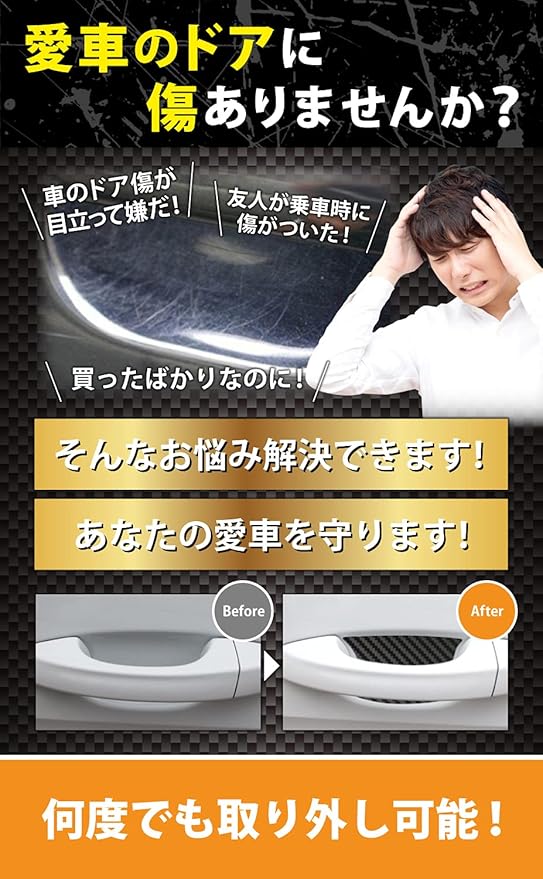 車ドア傷防止 車ドア保護マグネット ドアハンドルプロテクター 引っかき傷防止 保護フィルム 4枚+2枚予備入り