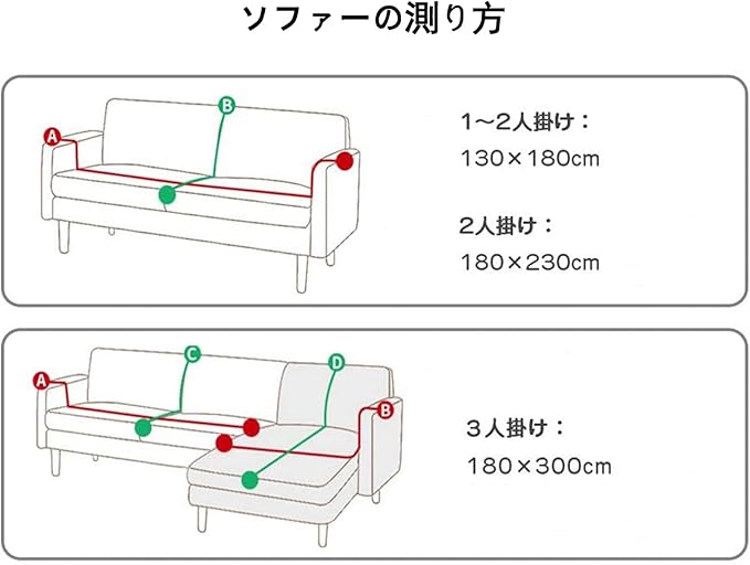 サイズ、素材:130*180cm(1~2人掛け)、180*230cm(2人掛け)、180*300cm(3人掛け)。素材:高品質 コットン、ポリエステル、快適で通気性に優れて。