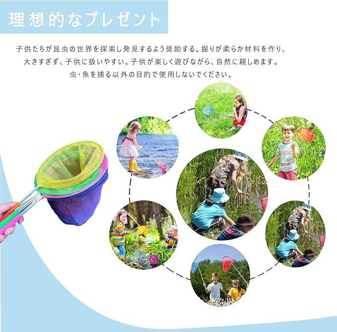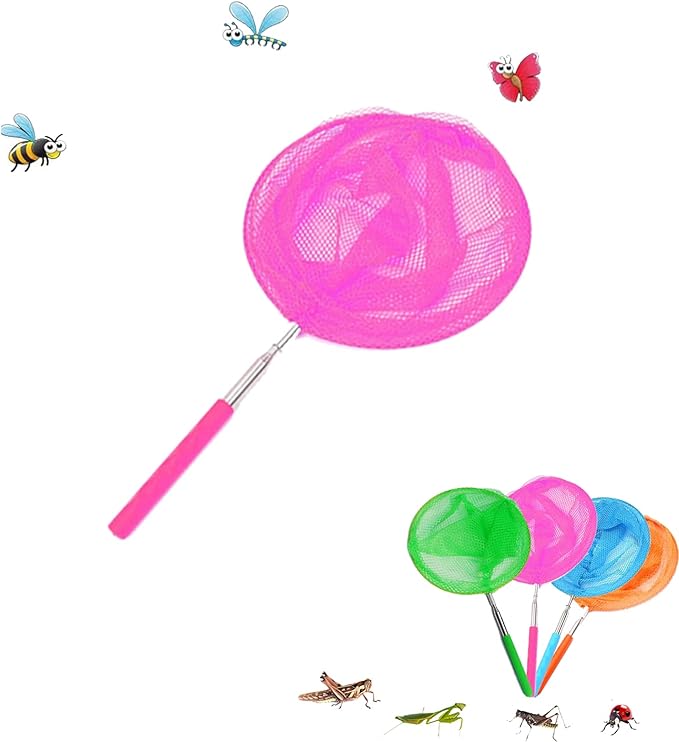虫取り網 軽量 コンパクト 魚取り子供夏休み 3段伸縮 昆虫採集 (ピンク)