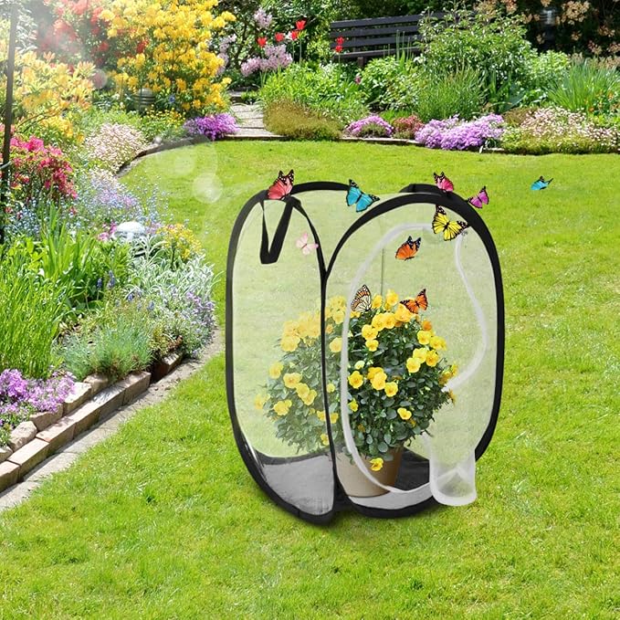 【折りたたみ式デザイン】UEETEK蝶観察用の折りたたみ式ケージは、収納スペースを節約し、持ち運びが簡単です。使用しないときは折りたたんで保管できます。