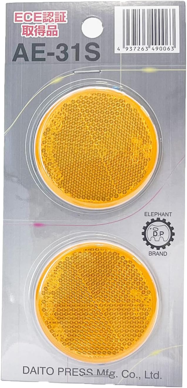 大東プレス(DAITO PRESS) 車用リフレクター 反射鏡 黄色 丸形 2個入 ECE認証 AE-31S レンズ径 54mm