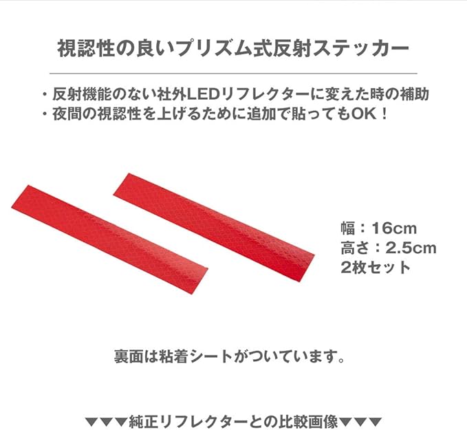 反射機能のないLEDリフレクターに変えた時や、夜間の後方からの追突防止などに便利