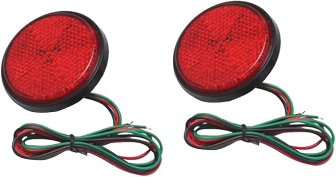 【ノーブランド品】 2個入り 丸型 リフレクター LEDライト付き 6mmナット 全3色 オートバイに適用 - 赤
