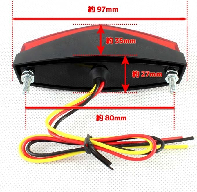 配線は3本だけですので、さほど苦労せずに取り付けできるかと思います。 黒=アース 赤=ブレーキ 黄=テール ※汎用品ですので取り付け時に穴あけや加工が必要になります。 ※取扱説明書、反射板、ナンバー灯は付属しておりません。 ※商品の価格、仕様は予告なく変更する場合がございます。