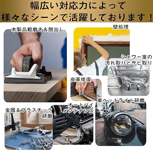 濡れた状態も乾燥状態も正常に利用できます。木製品、金属製品、プラスチック、陶磁器などの研磨に適用します。