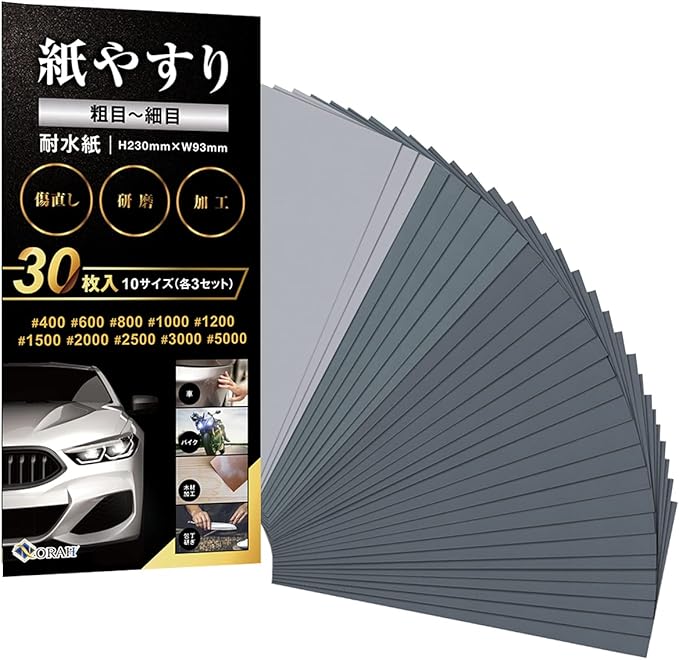 【初心者OK豊富な目サイズセット】#400 #600 #800 #1000 #1200 #1500 #2000 #2500 #3000#5000 これ一つで、必要な番手が揃います。