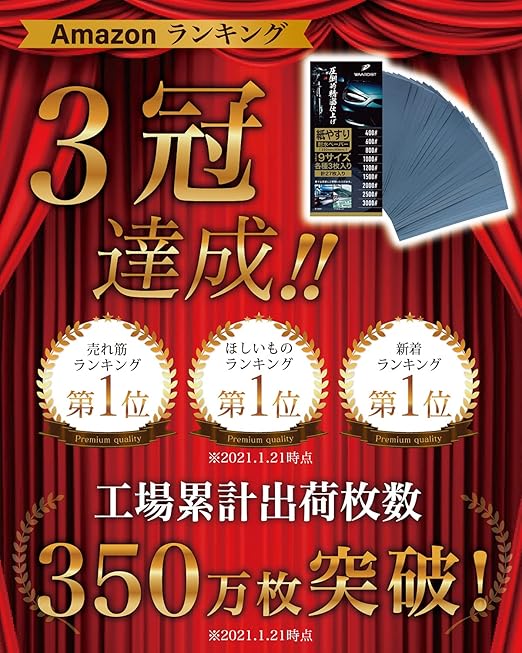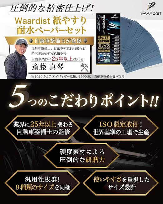 【整備士が監修】 3000番 ~ 400番 紙やすり 紙ヤスリ 耐水ペーパー セット サンドペーパー かみやすり 9種27枚