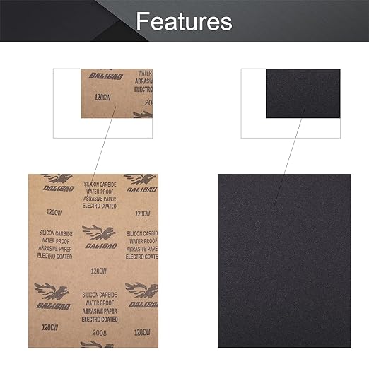 【仕様】製品名:サンドペーパー;材質:ブラックシリコンカーバイド;背基材:紙基;粒度:120#;ペーパー寸法:230*280*1.2mm(幅*長さ*厚さ);10個入り