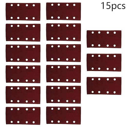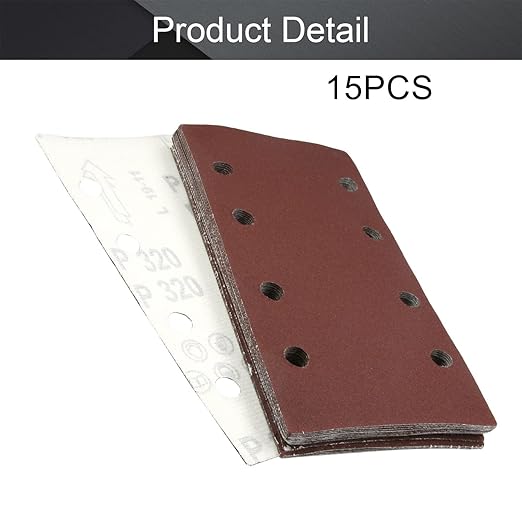 Utoolmart サンディングペーパー ディスクペーパー サンディングディスク 95*185mm 320# 15枚入り サンドペーパー 紙やすり 8つの穴 ディスクサンドペーパー 四角 植毛ペーパー マジックサンディングペーパー 金属 木工 研磨用