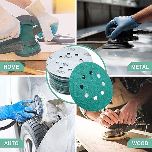 Utoolmart ディスクペーパー 5インチ 8穴あき サンドペーパー 粒度60# 15個入り 炭化ケイ素 カーボランダム SIC マジックテープ式 サンディングペーパー 紙やすり サンディングディスク 耐水 金属 木工 研磨用