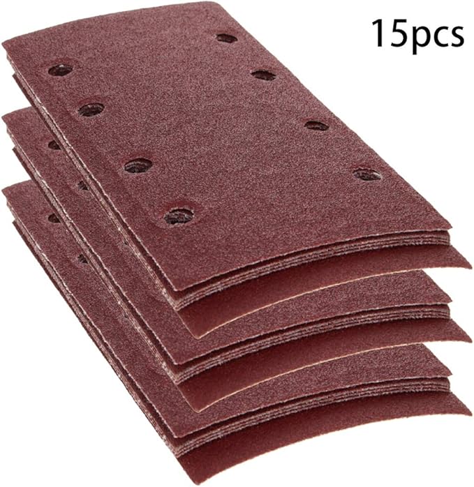 Utoolmart 四角い群れサンドペーパー サンドペーパー シートパッドサンペーパー ディスクペーパー サンドペーパー サンディングディスク エアーポリッシャー用 金属 木工 研磨用 8つの穴 赤い 95mm*185mm 80# 15pcs