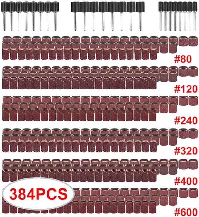 サンディングバンド 384点セット サンドペーパー サンドドラム 研削研磨工具 ドラムサンダーセットドラム研磨キット 80 120 240 320 400 600 グリット替えペーパー ネイル 金属研磨 ファイン ミディアム サンディングドラム DIY工具