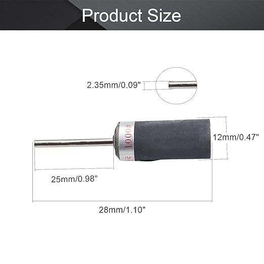 【仕様】製品名:研磨スリーブ;全長:55mm;ハンドル直径:2.35mm;基板素材:サンドペーパー;直径:12mm;目数:1000;サンドペーパーの長さ:28mm;1個入り