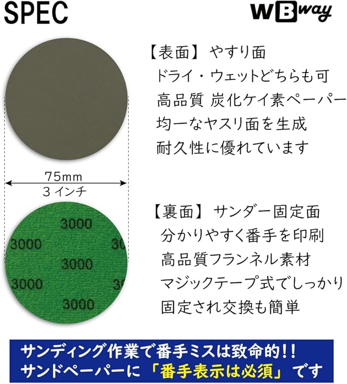 75mm サンドペーパー マジック式 【番手表示あり】 耐水ペーパー 丸形 3インチ 研磨 ディスク 超 鏡面仕上げ 25枚セット (#3000,#4000,#5000,#7000,#10000:各5枚) マジックテープ式 リフィル 紙やすり 光沢仕上げ #3000-10000 25枚