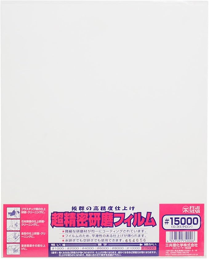 三共理化学 高精度仕上げ! 超精密研磨フィルム #15000 (0.3ミクロン) DIY、ホビー、プラスチック類の仕上研磨・クリーニングに
