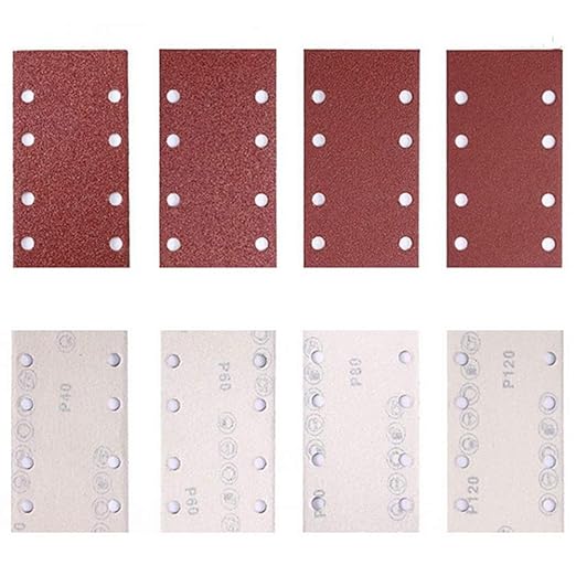 紙やすり 耐水サンドペーパー サンディングペーパー 矩形 サンドペーパー 8穴あき サンディングパット オービタルサンダーペーパーセット 木工用 ランダムアクションサンダー用 サンディング 研磨 サンダー用紙やすり 95x185mm 40枚組 (40 60 80 100 120 150 180 240各5枚)
