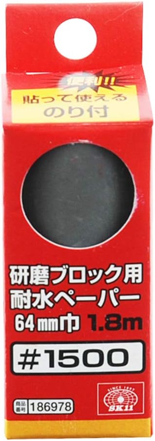 SK11(エスケー11) 研磨ブロック用 耐水ペーパー 64mm巾 1.8m #1500 貼って使えるのり付