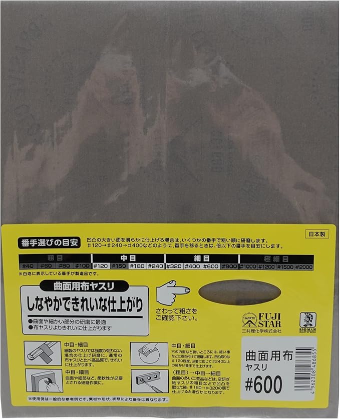 BIGMAN(ビッグマン) 曲面用布ヤスリ #600 DIY、ホビー、キッチンやトイレの掃除に